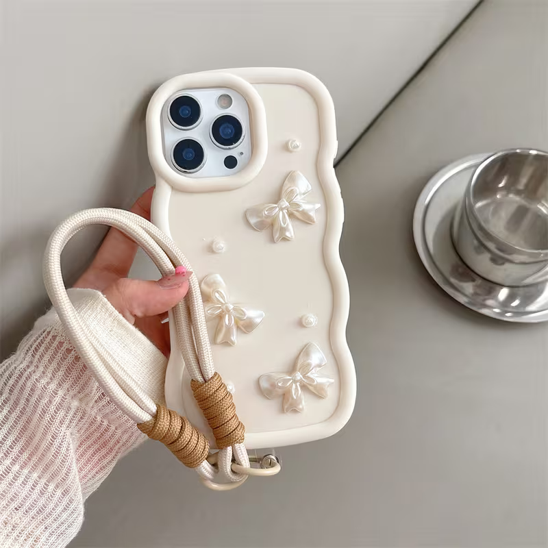 🎀 İnci Detaylı Fiyonklu Loom Askılı Telefon Kılıfı | Zarif & Şık Tasarım ✨