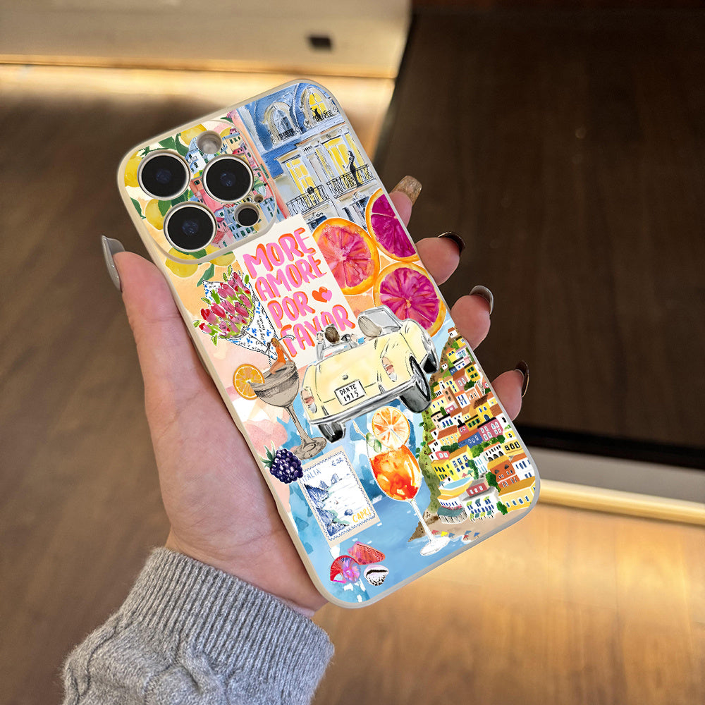 Amore Avrupa Kolaj Estetik Telefon Kılıfı – iPhone 16/15/14/13/12/11 Pro Max & Plus Uyumlu