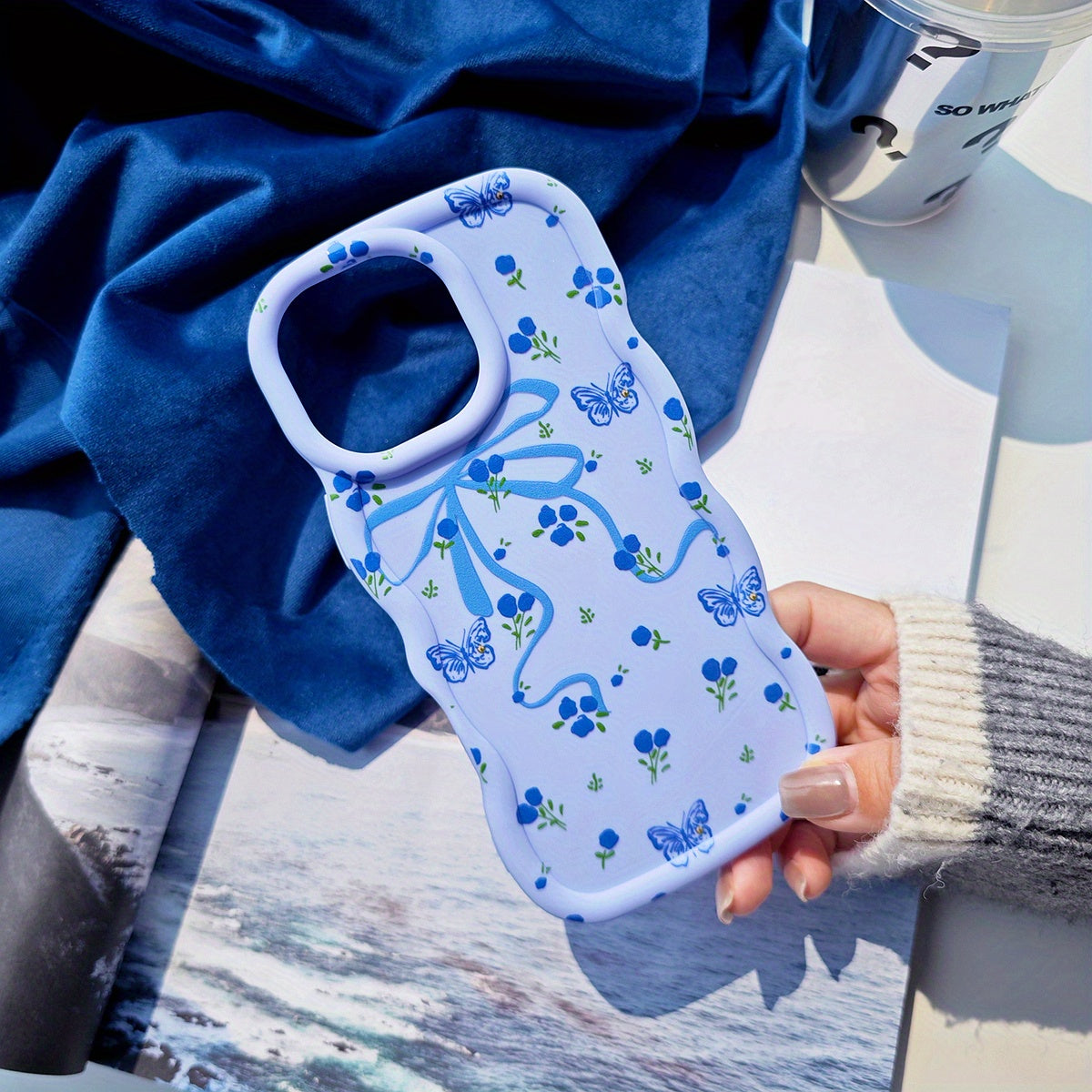 Sevimli ve Yaratıcı Telefon Kılıfı – Mavi Çiçek, Fiyonk ve Gökyüzü Mavisi Renkler, Sevimli Çizgi Film Çiçek Desenli, Macaron Renk Tasarımlı, Düşmelere Karşı Tam Koruma Sağlayan, Taze ve Renkli Görünümlü