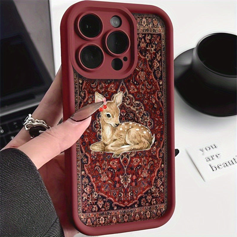 Vintage Desenli Geyik Figürlü Yükseltilmiş Kenarlı Telefon Kılıfı